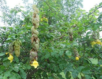 Caryota urens (Jaggery Palm, Sago Palm, Toddy Palm, Wine Palm) is Medium-sized to large, fast-growing, monocarpic palm with a single, sturdy stem clothed with fibrous leaf bases. Arching, broadly linear, 2-pinnate, dark green leaves, to 6m long, have 6-50 obliquely wedge-shaped leaflets, to 30cm long, of cream flowers, 1-3cm across, are produced at the end of the tree, then from each leaf axil downwards. The sugary sap is boiled down to make crude sugar (Jaggery), or is distilled into toddy. Height 12-25m, Spread 10m. Native of India, Sri Lanka, Malaysian peninsula.